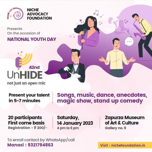 Celebrate National Youth Day with NICHE Advocacy Foundation’s platform for self-expression. Showcase your talent (dance, music, magic, comedy, and more) while enjoying an evening of creativity and scenic views at Zapurza Museum of Art & Culture.Date: January 14, 2023