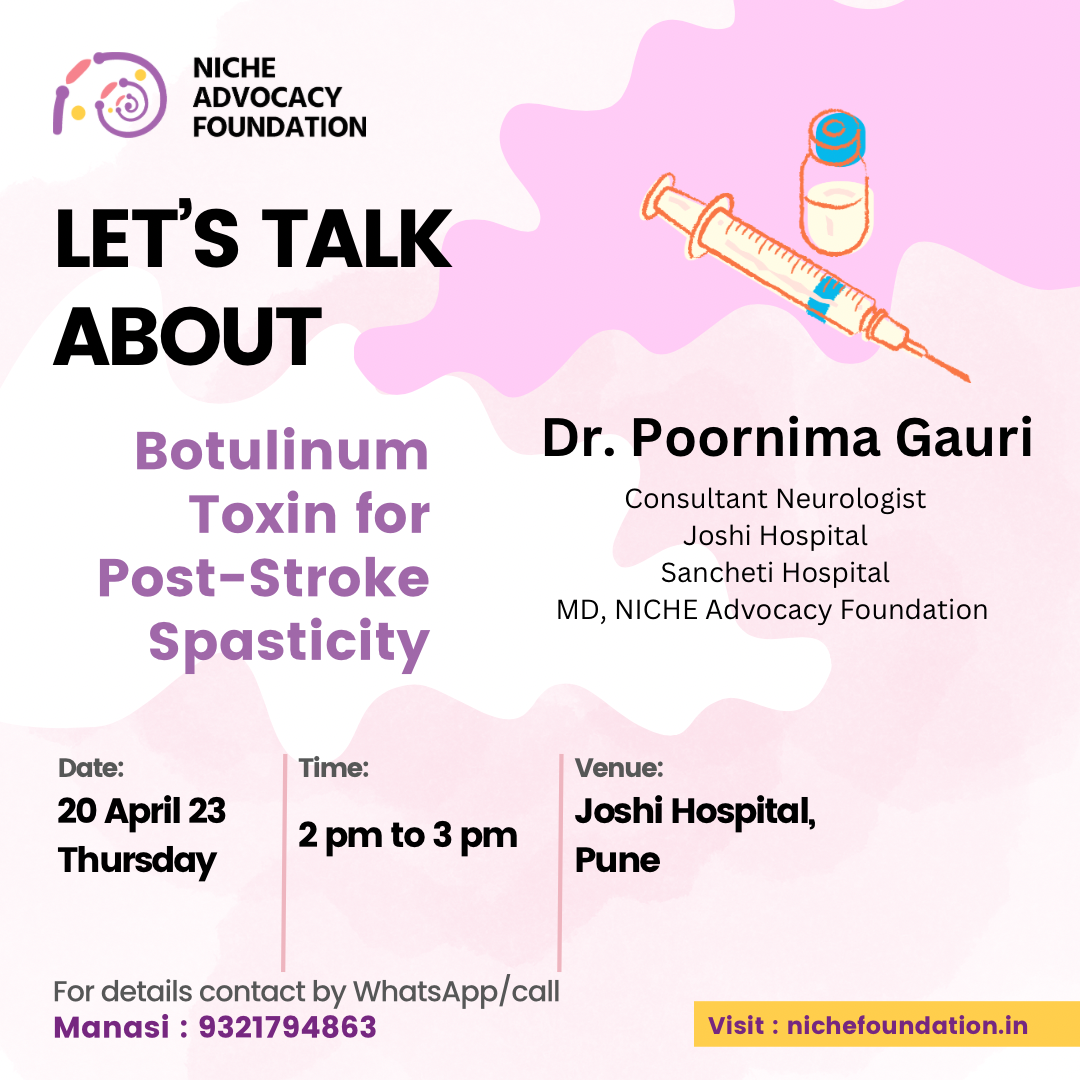 A session on Botulinum Toxin for Post-Stroke Spasticity was conducted by Dr. Poornima Gauri for patients, caregivers, physiotherapists, and RMOs to create awareness and share management approaches.Date: April 20, 2023