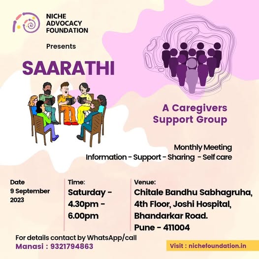 NICHE Advocacy Foundation, along with Dr. Poornima Gauri, presents the second session of SAARATHI – A Caregiver’s Support Group, an evening of knowledge sharing for caregivers.